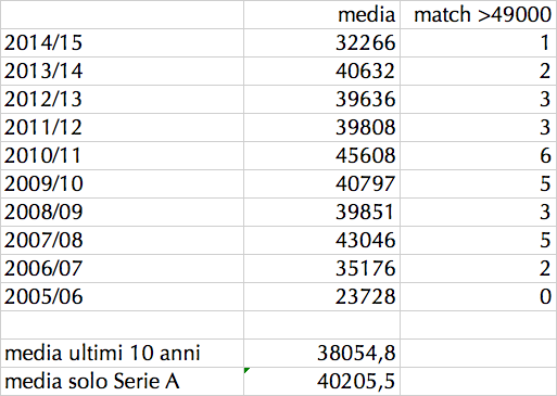 Insomma, i 45mila spettatori previsti per il prossimo San Paolo sono frutto di un certo ragionamento che è tutto nelle statististiche e nei numeri.