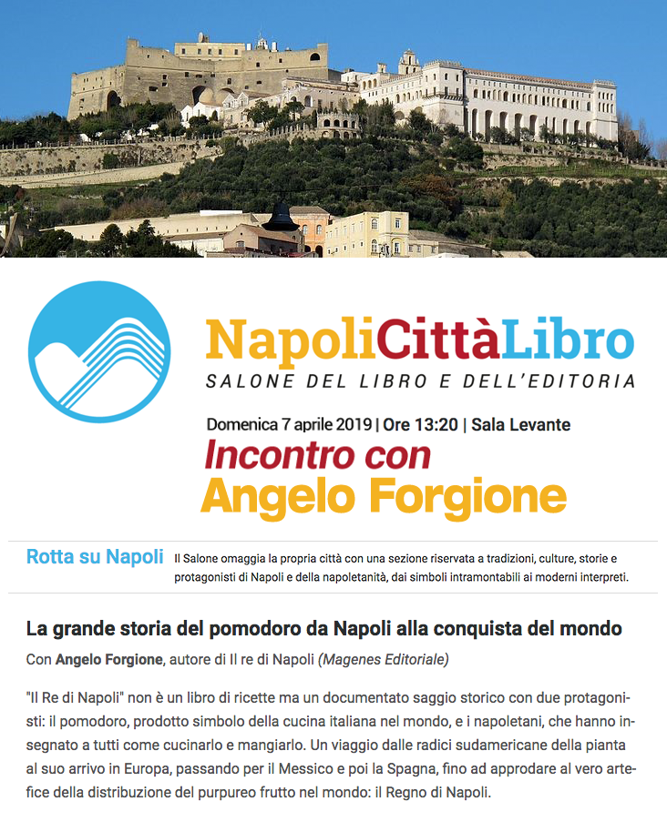 Domenica 7 aprile, nell’ambito della rassegna Napoli Città Libro, il salone del libro e dell’editoria, incontro con “La grande storia del pomodoro da Napoli alla conquista del mondo”. Appuntamento alle ore 13.20, Castel Sant’Elmo, Sala Levante.