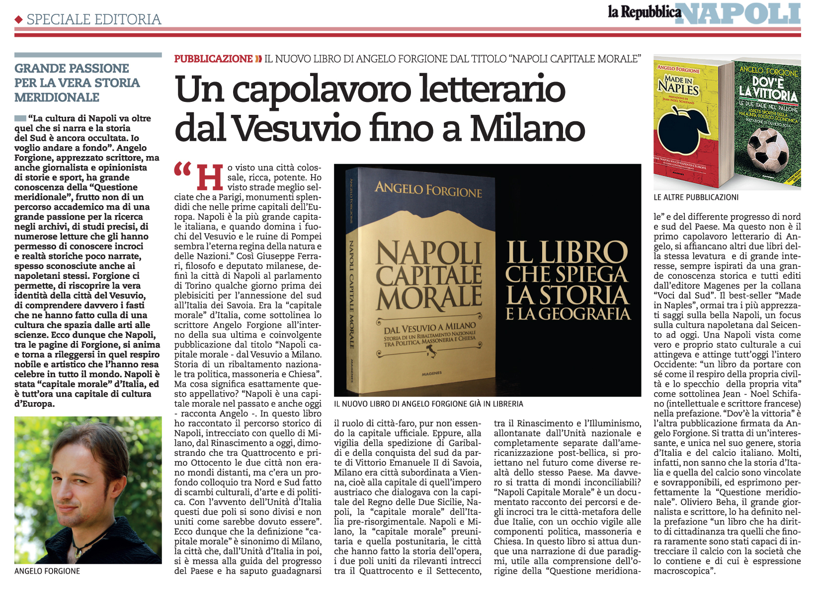 Ci siamo Angelo, Napoli Capitale Morale è sugli scaffali delle librerie. Quanta fatica per un’opera che si propone di svelare gli intrecci, le analogie e i personaggi che hanno accompagnato le città di Napoli e Milano dal Rinascimento ad oggi?