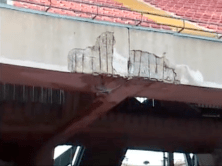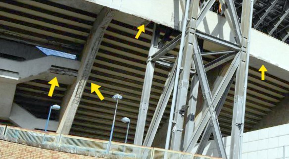 Il problema è vecchio, non è certo un fulmine a ciel sereno. Il fatto è che il “San Paolo”, già rovinato dalla cascata di ferro nella speculazione di Italia ’90, senza manutenzione straordinaria sta anche crollando lentamente. La struttura è interamente interessata dal fenomeno della “carbonatazione”, ossia la reazione tra l’idrossido presente nel calcestruzzo e l’anidride carbonica che produce carbonato di calcio. La conseguenza è che gli intonaci si distaccano (rischiando di cadere sugli spettatori sottostanti) e i ferri di armatura finiscono per restare scoperti e soggetti agli agenti atmosferici che li corrodono.