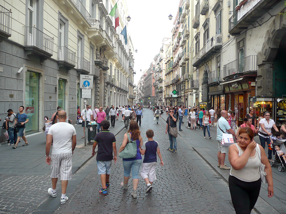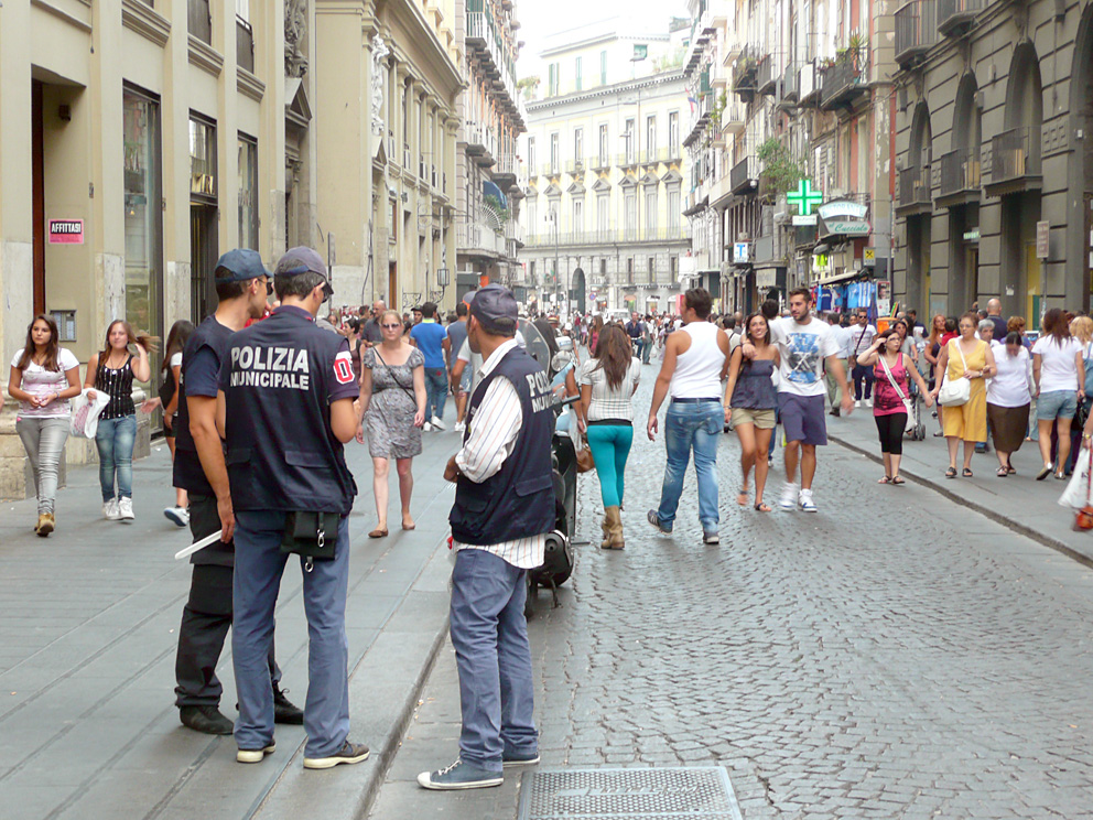 Oggi la strada dello struscio è tornata piacevolmente legale e vivibile per effetto dell’avvio al servizio di 106 nuovi addetti della Polizia Municipale voluti dal Sindaco De Magistris, e la differenza rispetto agli ultimi anni era evidente anche agli occhi dei più distratti. Spiccava all’occhio una legalità ritrovata garantita da mini-squadre in movimento della Polizia Municipale “di vedetta” a 50 metri l’una dall’altra. Multe a chiunque cadeva in contravvenzione e assenza totale di teli bianchi con merce falsificata e venditori ambulanti, cosa che garantiva un comodo passeggio privo di strettoie e deviazioni. Lo stesso anche in Galleria Umberto I e all’ingresso della stessa, laddove elicotteri molesti e giostrine rumorose l’hanno fin qui fatta da padrone. Smontata anche la recinzione d’intralcio in piazza Duca D’Aosta, ai piedi dell’orologio storico dell’Ente Autonomo Volturno.