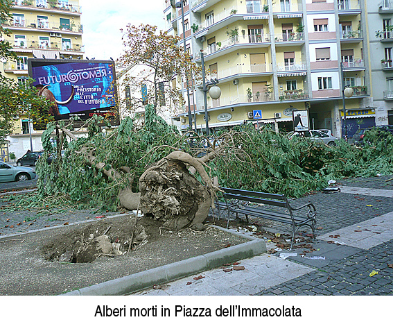 Ricordo bene che l’Assessore all’Ambiente Rino Nasti lanciò lo scorso anno in pompa magna la campagna “Napoli si albera” che prevedeva la piantumazione di 1700 nuovi alberi per una città più verde. La città fu tappezzata di manifesti stradali che ne annunciavano la messa in pratica, ma ad oggi la politica ecologista in città è fatta di palme morte senza aver messo in campo alcuna misura di contrasto, pini rappresentativi che si abbattono con leggerezza e qualche alberello-bonsai qua e la.