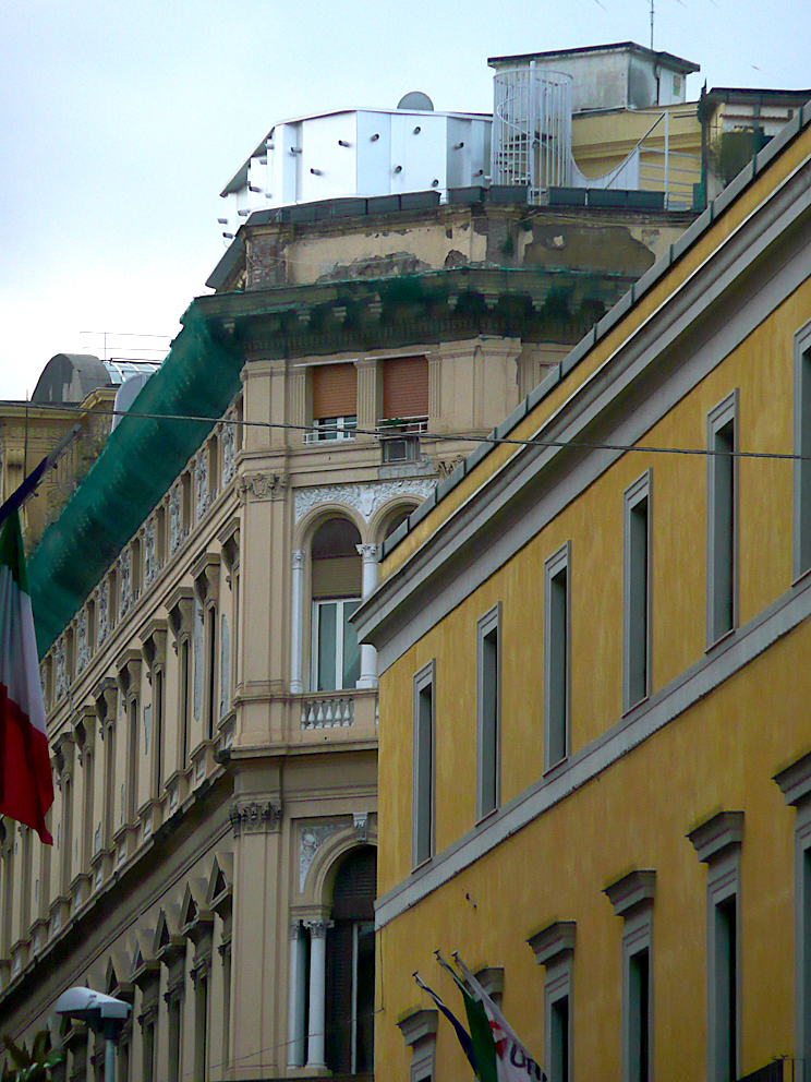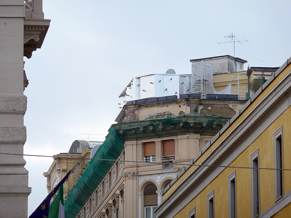 Qualcuno lo ha definito baraccone psichedelico, qualcun altro lo ritiene uno scempio che deturpa il meraviglioso lungomare. Vero che di giorno è brutto, e che maggior cura si poteva avere per rivestirlo di verde. Ma non giunge da nessuna parte il lamento per le vere oscenità permanenti della città, gli sfregi perpetrati alla bellezza incomparabile che il mondo riconosce alla baia di Napoli. Chi, ad esempio, si lamenta più del grattacielo di via Medina? Non mediocre esempio di architettura ma abominevole schiaffo al panorama, piazzato lì, sulla linea di costa, tra il Vesuvio e la collina del Vomero, a mettere discordanza e sproporzione nell’ambiente urbano del centro.
